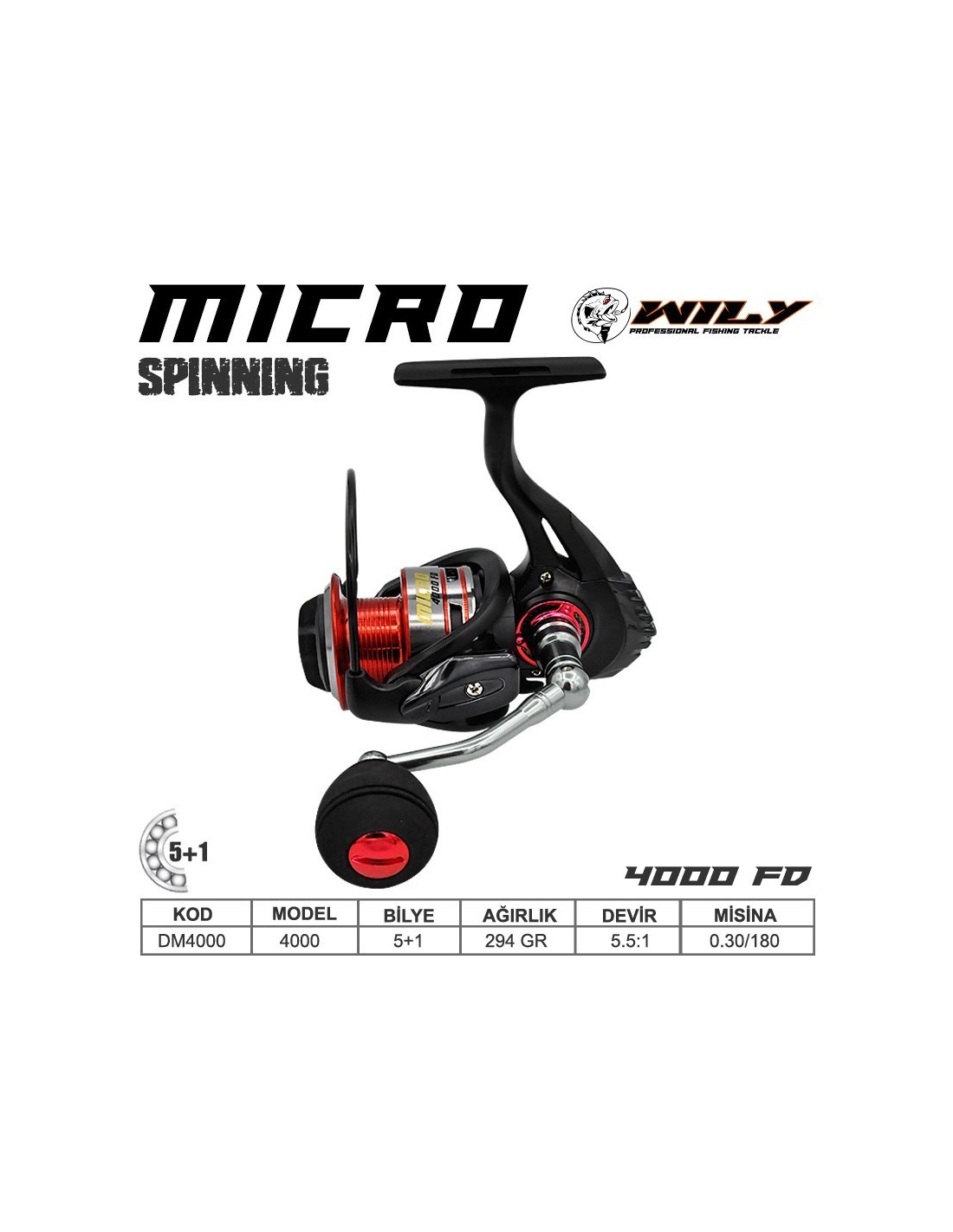 Wily Micro 4000 DM Spin Metal Olta Makinesi, orta ila büyük boy balık avcılığı için özel olarak tasarlanmış yüksek kaliteli bir ekipmandır. Bu model, metal gövdesi ile aşırı koşullarda bile mükemmel bir dayanıklılık ve sağlamlık sunarken, 5+1 bilyalı rulman sistemi sayesinde kullanıcıya pürüzsüz ve güvenilir bir sarım deneyimi sağlar.